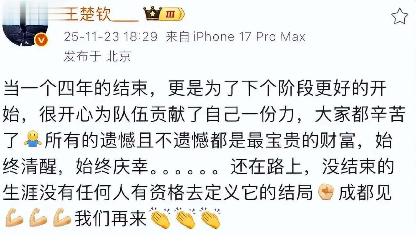 近日,跟着全运会圆满收场,王楚钦在外交媒体上共享了这么一段感悟: