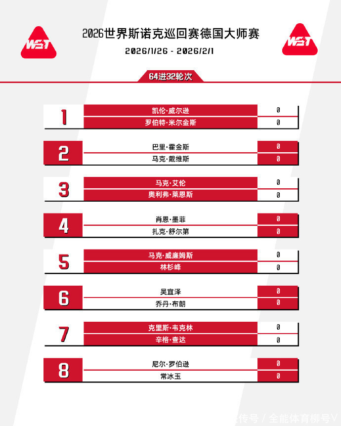 北京时辰1月26日音信,2026年斯诺克德国巨匠赛将至今天晚上负责开杆。第一轮首个比赛日,按照赛程,共有吴宜泽、常冰玉两位中国选手,“金左手”马克-威廉姆斯、“墨尔本机器”尼尔-罗伯逊、“魔术师”肖恩-墨菲、“囧哥”凯伦-威尔逊共有四位世锦赛冠军出战。可惜,因为签证的原因,吴宜泽、常冰玉无法出战,无奈退出比赛。